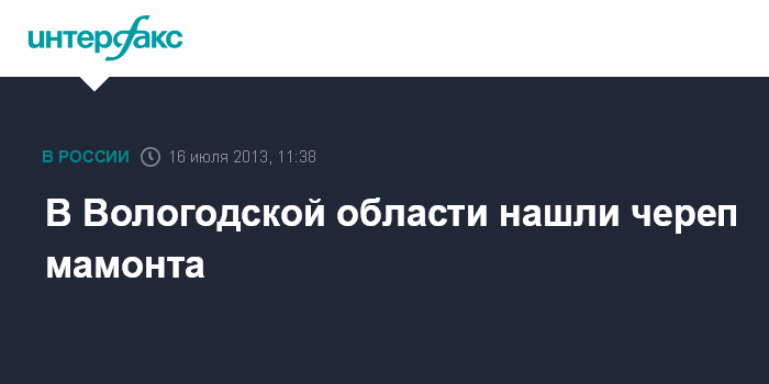 Вологда. 16 июля. INTERFAX.RU - Челюсть мамонта нашли под Тотьмой (Вологодская область), сообщает пресс-служба администрации региона.