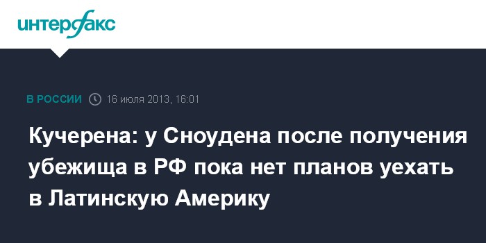 Кучерена: у Сноудена после получения убежища в РФ пока нет планов уехать в Латинскую Америку
