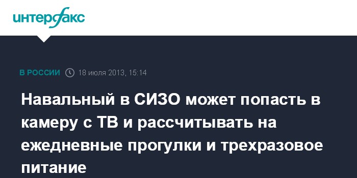 Навальный в СИЗО может попасть в камеру с ТВ и рассчитывать на ежедневные прогулки и трехразовое питание