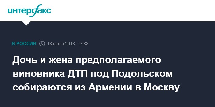 Дочь и жена предполагаемого виновника ДТП под Подольском собираются из Армении в Москву