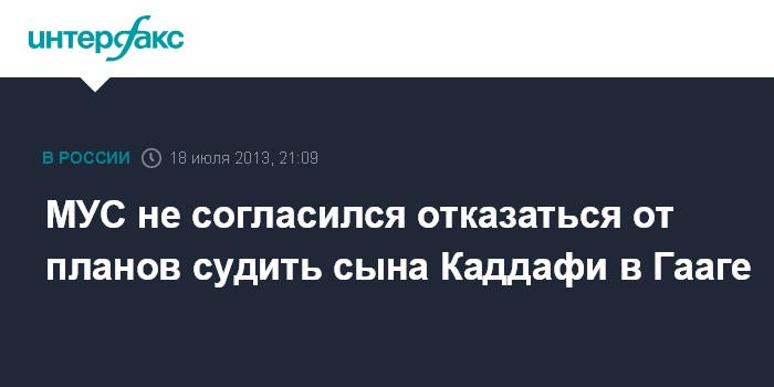 Гаага. 18 июля. INTERFAX.RU - Международный уголовный суд (МУС) объявил в четверг, что отказался удовлетворить просьбу властей Ливии приостановить исполнение решения о передаче в Гаагу сына Муаммара Каддафи Сейфа аль-Ислама.