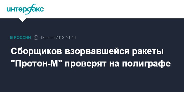 Сборщиков взорвавшейся ракеты "Протон-М" проверят на полиграфе