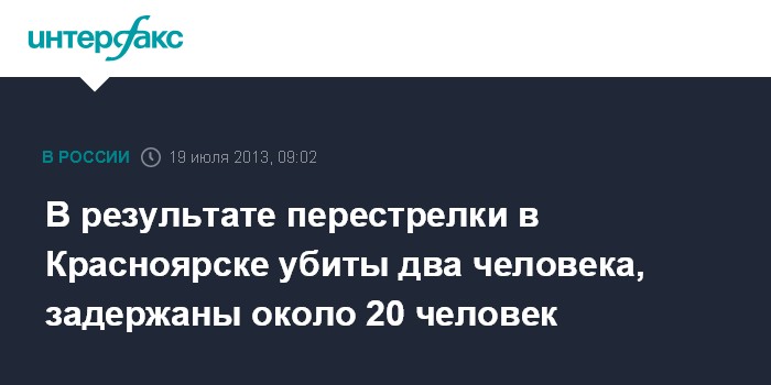 В результате перестрелки в Красноярске убиты два человека, задержаны около 20 человек