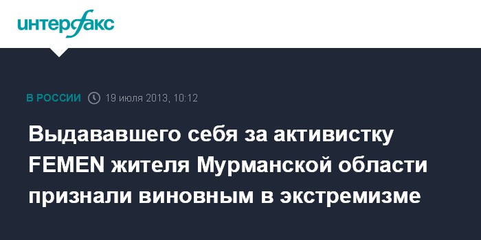 Выдававшего себя за активистку FEMEN жителя Мурманской области признали виновным в экстремизме