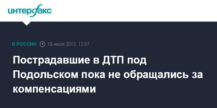 Москва. 19 июля. INTERFAX.RU - В настоящее время в департамент соцзащиты населения столицы не обратился ни один из пострадавших в ДТП под Подольском, либо родственников погибших.