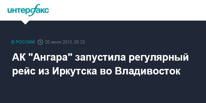 АК "Ангара" запустила регулярный рейс из Иркутска во Владивосток