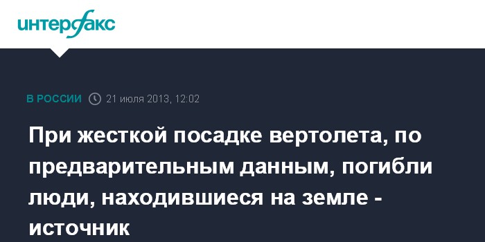 При жесткой посадке вертолета, по предварительным данным, погибли люди, находившиеся на земле - источник
