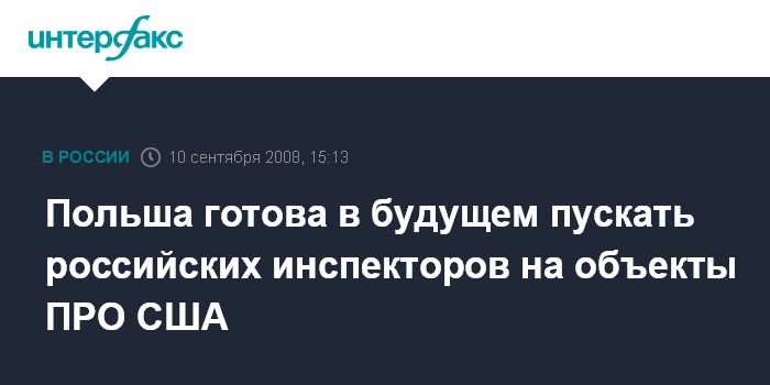Варшава. 10 сентября. INTERFAX.RU - Министр иностранных дел Польши Радослав Сикорский выразил готовность предоставить российским военным право инспектировать будущие объекты американской противоракетной обороны (ПРО) на территории страны.