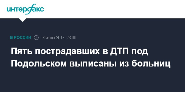 Москва. 23 июля. INTERFAX.RU - Пять пострадавших в ДТП под Подольском, где погибли 18 человек, выписаны из больниц, сообщил "Интерфаксу" источник в медицинских кругах.