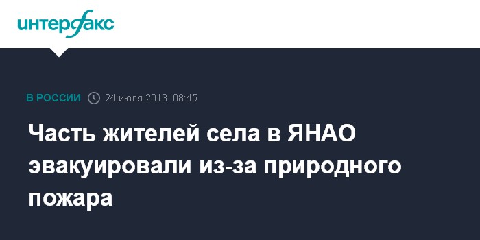 Салехард. 24 июля. INTERFAX.RU - Природный пожар бушует недалеко от села Пельвож Ямало-Ненецкого автономного округа, угрозы населенному пункту нет, но оттуда эвакуировали женщин и детей, сообщает пресс-служба ГУ МЧС по ЯНАО.