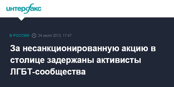 Москва. 24 июля. INTERFAX.RU - Несколько активистов гей-движения задержаны в центре столицы за несанкционированную акцию.