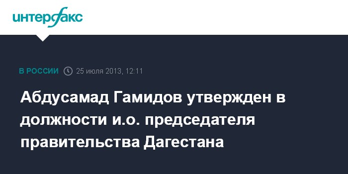 Махачкала. 25 июля. INTERFAX.RU - Парламент Дагестана на 26-й внеочередной сессии единогласно утвердил бывшего и.о. министра финансов Абдусамада Гамидова в должности и.о. председателя правительства.