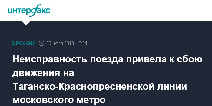 Собеседник агентства уточнил, что неисправный состав находился на перегоне с 16:00 до 16:18. "Интерфакс" не располагает официальным подтверждением этой информации.