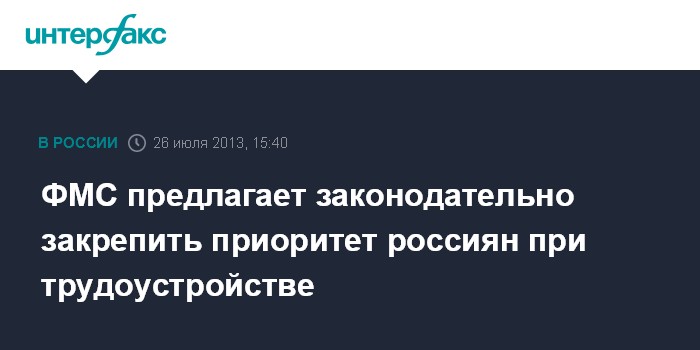 ФМС предлагает законодательно закрепить приоритет россиян при трудоустройстве