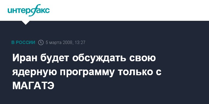 Тегеран. 5 марта. INTERFAX.RU - Власти Ирана готовы вести переговоры насчет своей ядерной программы только с Международным агентством по атомной энергии (МАГАТЭ), сообщил президент страны Махмуд Ахмадинежад агентству ИРНА.
