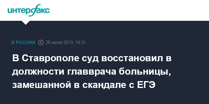 В Ставрополе суд восстановил в должности главврача больницы, замешанной в скандале с ЕГЭ