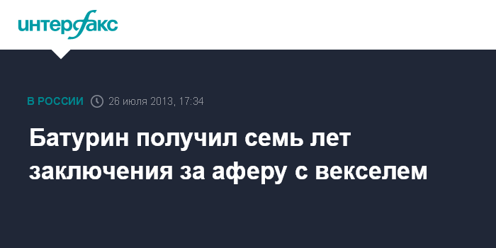 Москва. 26 июля. INTERFAX.RU - Гагаринский суд Москвы приговорил к 7 годам колонии общего режима предпринимателя Виктора Батурина, признанного виновным по делу о мошенничестве с векселем.