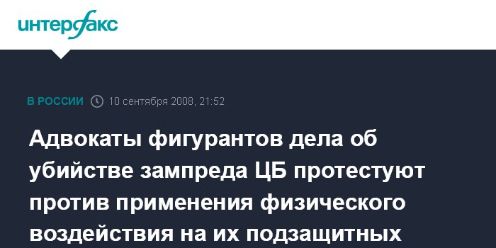 Москва. 10 сентября. ИНТЕРФАКС - Адвокаты обвиняемых по делу об убийстве первого зампредседателя ЦБ РФ Андрея Козлова заявляют, что намерены ходатайствовать о наказании лиц, которые применили физическое воздействие к их подзащитным при доставке в суд.