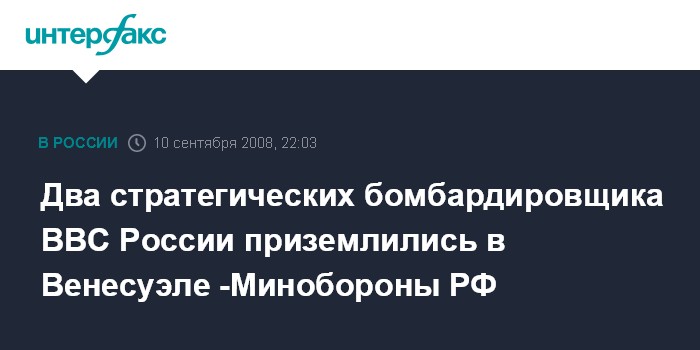 Москва. 10 сентября. ИНТЕРФАКС - Два стратегических бомбардировщика