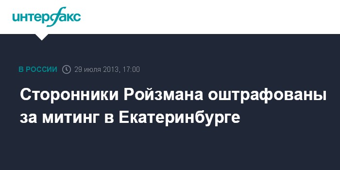 Екатеринбург. 29 июля. INTERFAX.RU - Трое человек, задержанных в субботу на митинге за агитацию в поддержку основателя фонда "Город без наркотиков" Евгения Ройзмана на выборах мэра Екатеринбурга, оштрафованы.