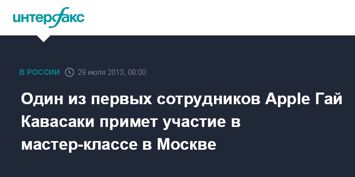 Москва. 31 июля. INTERFAX.RU - 3 октября 2013 года в центре Digital October состоится мастер-класс "Разработка digital стратегии. Новейшие инструменты и технологии" с участием одним из первых сотрудников Apple Гая Кавасаки.