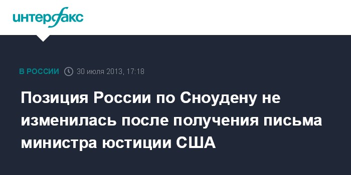 Позиция России по Сноудену не изменилась после получения письма министра юстиции США