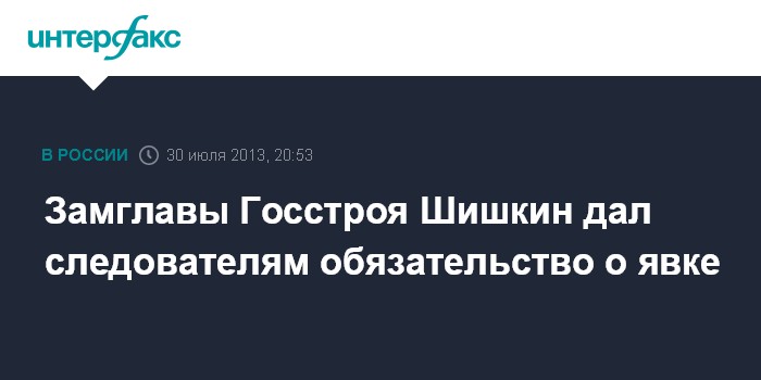 Замглавы Госстроя Шишкин дал следователям обязательство о явке
