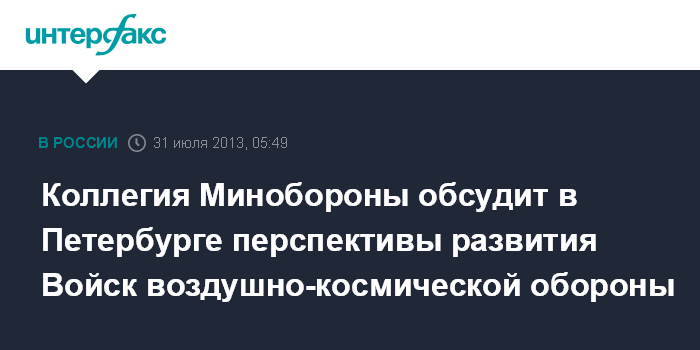 Коллегия Минобороны обсудит в Петербурге перспективы развития Войск воздушно-космической обороны