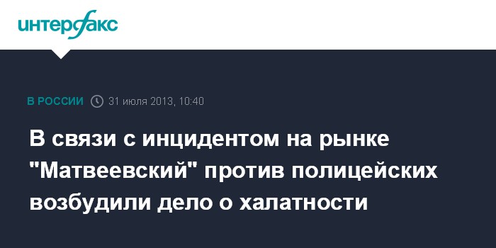 В связи с инцидентом на рынке "Матвеевский" против полицейских возбудили дело о халатности