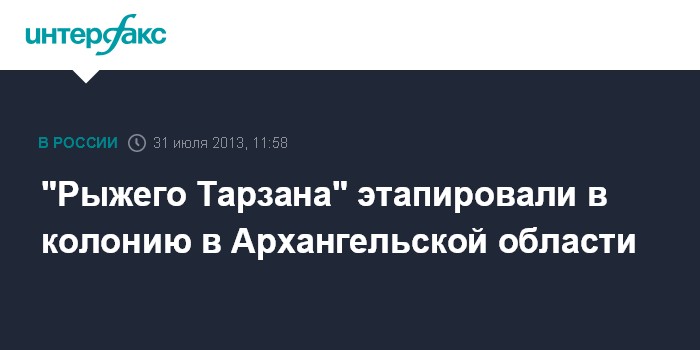"Рыжего Тарзана" этапировали в колонию в Архангельской области