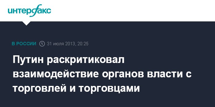 Путин раскритиковал взаимодействие органов власти с торговлей и торговцами