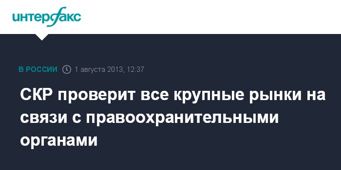 Москва. 1 августа. INTERFAX.RU - Подразделения СКР после инцидента на московском рынке "Матвеевский" проведут проверки всех крупных торговых точек в регионах на предмет криминального сращивания их администраций с правоохранительными органами, сообщил официальный представитель ведомства Владимир Маркин.