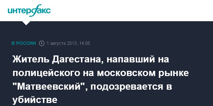 Житель Дагестана, напавший на полицейского на московском рынке "Матвеевский", подозревается в убийстве