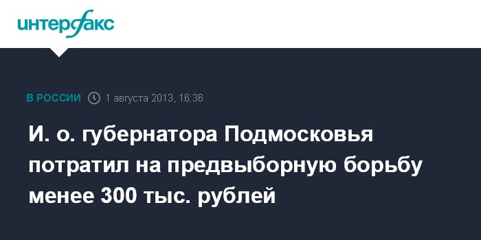 И. о. губернатора Подмосковья потратил на предвыборную борьбу менее 300 тыс. рублей