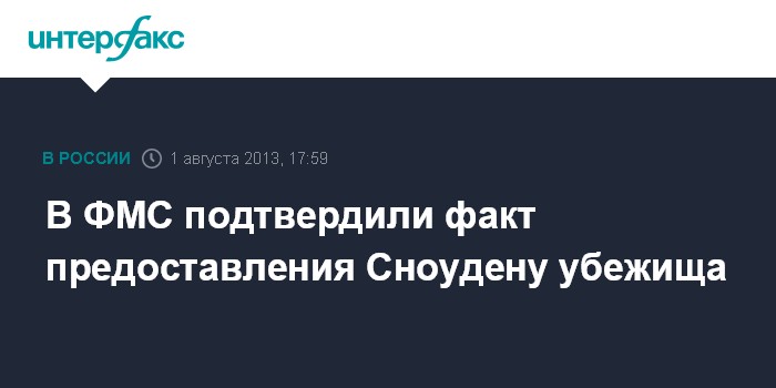 Москва. 1 августа. INTERFAX.RU - В Федеральной миграционной службе (ФМС) РФ официально подтвердили, что бывший сотрудник американских спецслужб Эдвард Сноуден получил временное убежище.