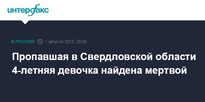 Пропавшая в Свердловской области 4-летняя девочка найдена мертвой
