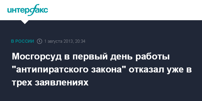 Мосгорсуд в первый день работы "антипиратского закона" отказал уже в трех заявлениях