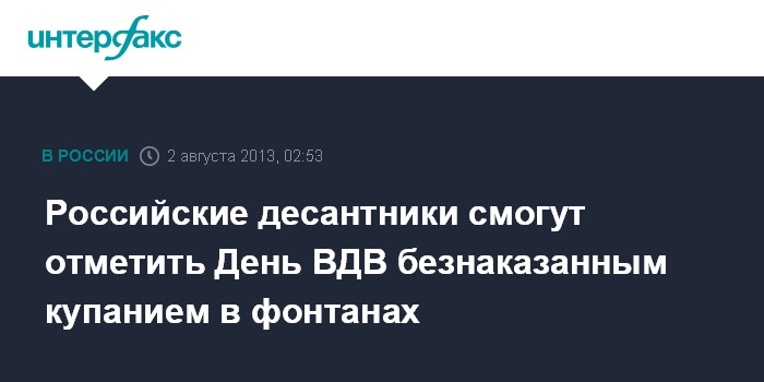 Российские десантники смогут отметить День ВДВ безнаказанным купанием в фонтанах