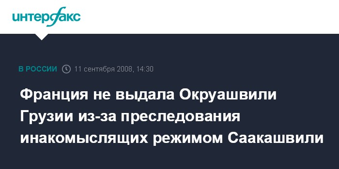 Москва. 11 сентября. INTERFAX.RU - Решение Парижского апелляционного суда, отказавшего грузинским властям в экстрадиции бывшего министра обороны Грузии Ираклия Окруашвили, свидетельствует о неверии французской стороны в возможность принятия грузинским судом справедливого решения, заявила адвокат экс-министра Эка Беселия.