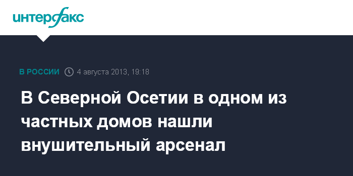 Владикавказ. 4 августа. INTERFAX.RU - Полицейские обнаружили и изъяли большое количество оружия и боеприпасов в одном из частных домов в городе Ардон в Северной Осетии.