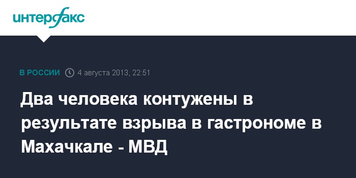 Махачкала. 4 августа. ИНТЕРФАКС-ЮГ - Продавщица и охранник гастронома в Махачкале, в котором сработало взрывное устройство, контужены, магазин тушат пожарные, сообщили агентству "Интерфакс-Юг" в пресс-службе МВД по Дагестану.