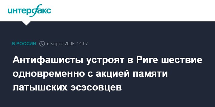 Рига. 5 марта. INTERFAX.RU - В Рижскую думу поступила заявка Латвийского антифашистского комитета на проведение 16 марта уличного шествия и возложение цветов к памятнику Свободы в память о жертвах нацистов, сообщил агентству BNS в среду представитель думы Угис Видаускис (Ugis Vidauskis).