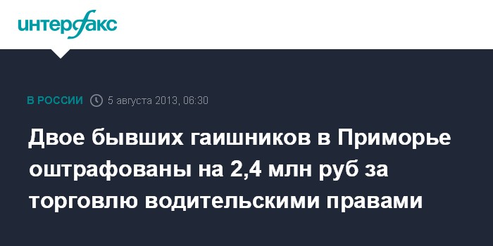 Двое бывших гаишников в Приморье оштрафованы на 2,4 млн руб за торговлю водительскими правами