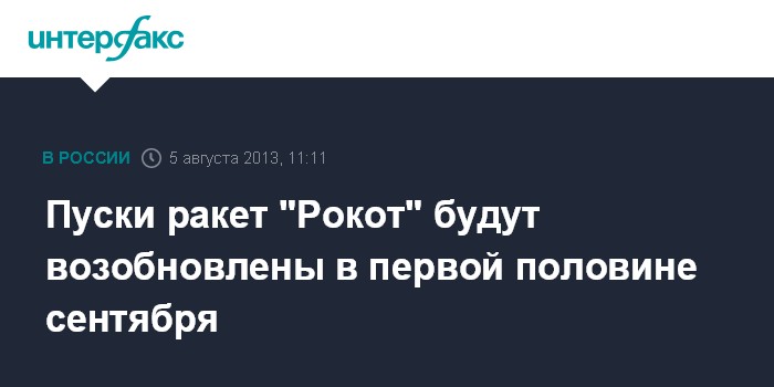 Пуски ракет "Рокот" будут возобновлены в первой половине сентября