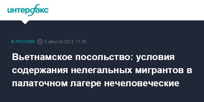 Москва. 5 августа. INTERFAX.RU - В посольстве Вьетнама в России расценивают как нечеловеческие условия содержания нелегальных мигрантов в палаточном лагере в Москве, заявил начальник консульского отдела вьетнамской дипмиссии Ле Хонг Чыонг.