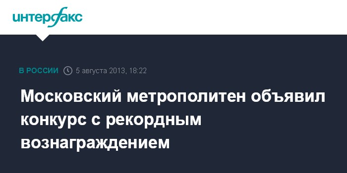 Московский метрополитен объявил конкурс с рекордным вознаграждением
