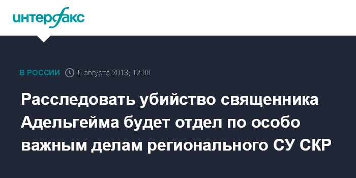 Расследовать убийство священника Адельгейма будет отдел по особо важным делам регионального СУ СКР