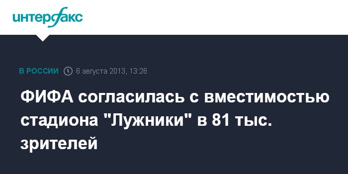 ФИФА согласилась с вместимостью стадиона "Лужники" в 81 тыс. зрителей