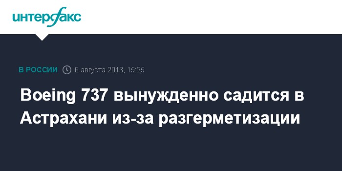 Астрахань. 6 августа. INTERFAX.RU - В аэропорту Астрахани самолет Boeing 737-500 совершает вынужденную посадку из-за разгерметизации, сообщили агентству "Интерфакс-Юг" в пресс-службе ГУ МЧС по региону.