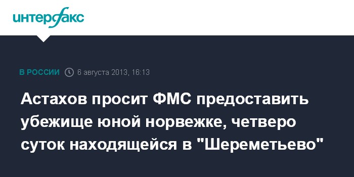 Астахов просит ФМС предоставить убежище юной норвежке, четверо суток находящейся в "Шереметьево"
